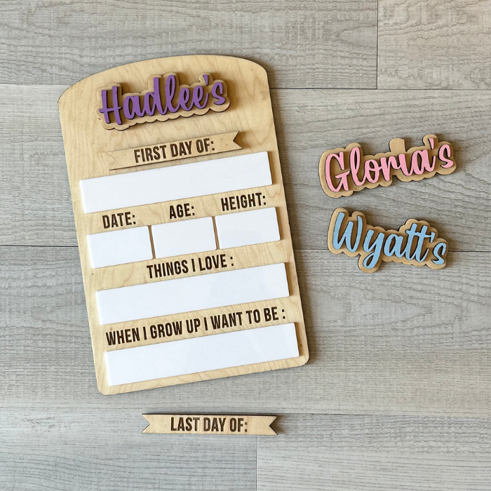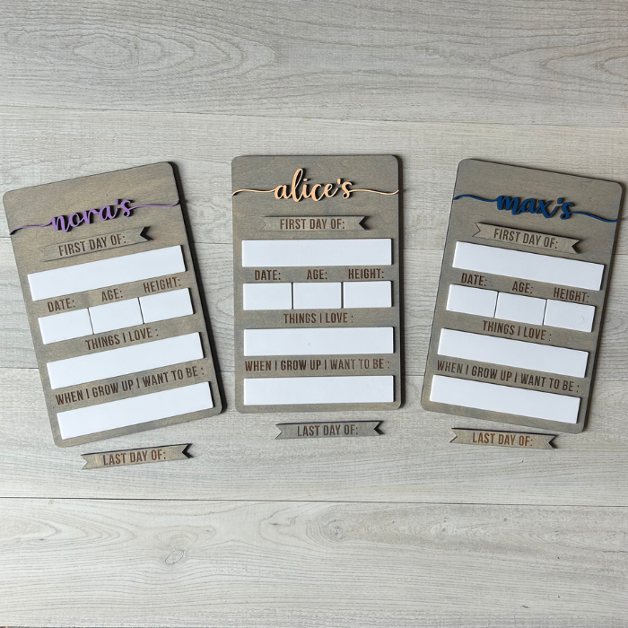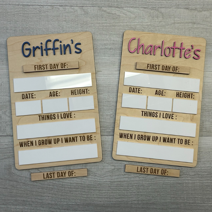 The perfect way to capture your child’s milestones each year with these laser cut, dry erase boards